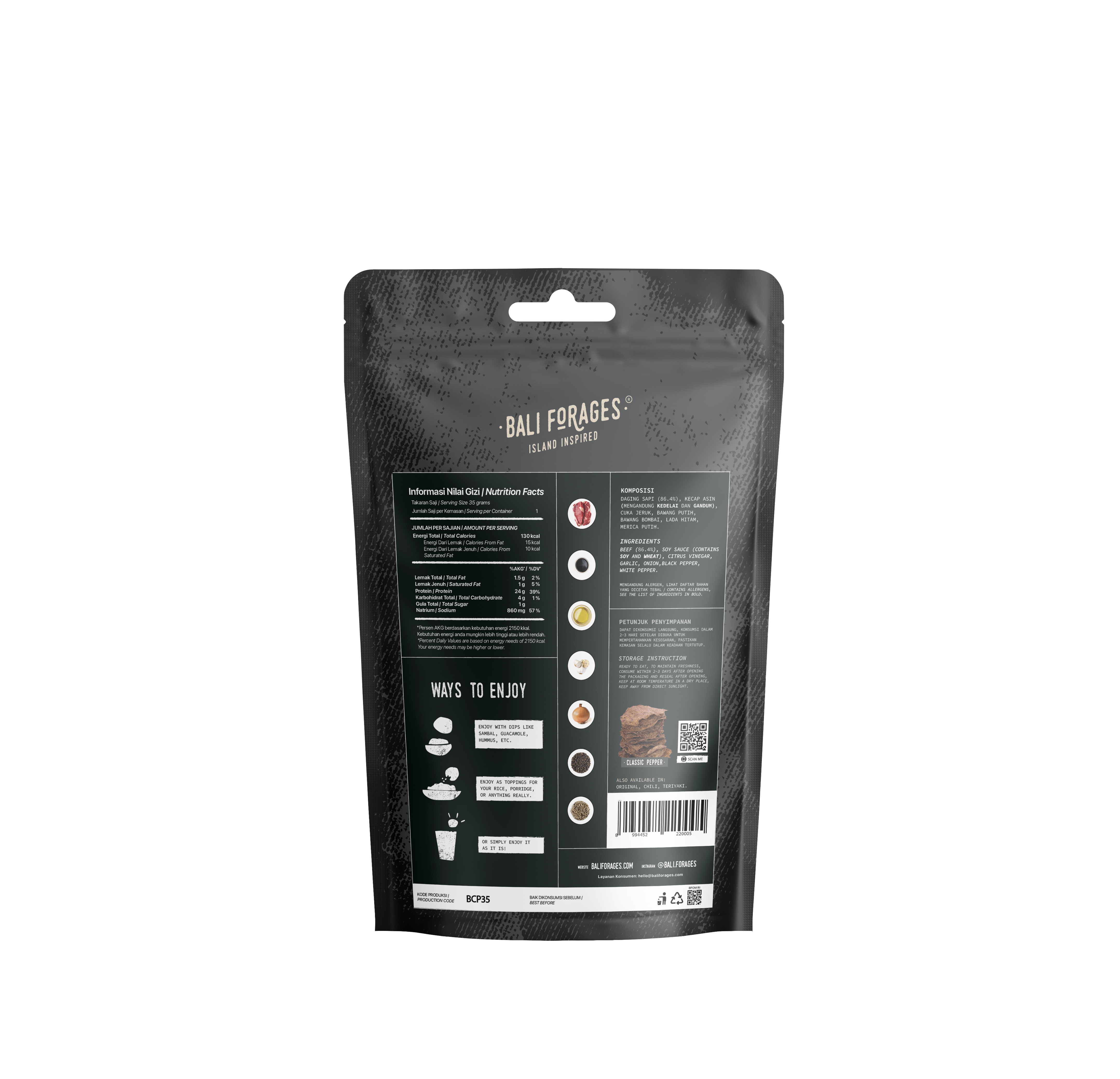 A great on-the-go snack, high in protein, making it ideal for active adults and growing children. If you're a fan of Indonesian dendeng but looking for a healthier version, our Chips are air-dried without the use of oils, artificial flavors, and preservatives.
